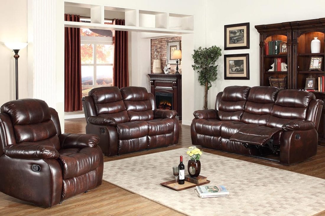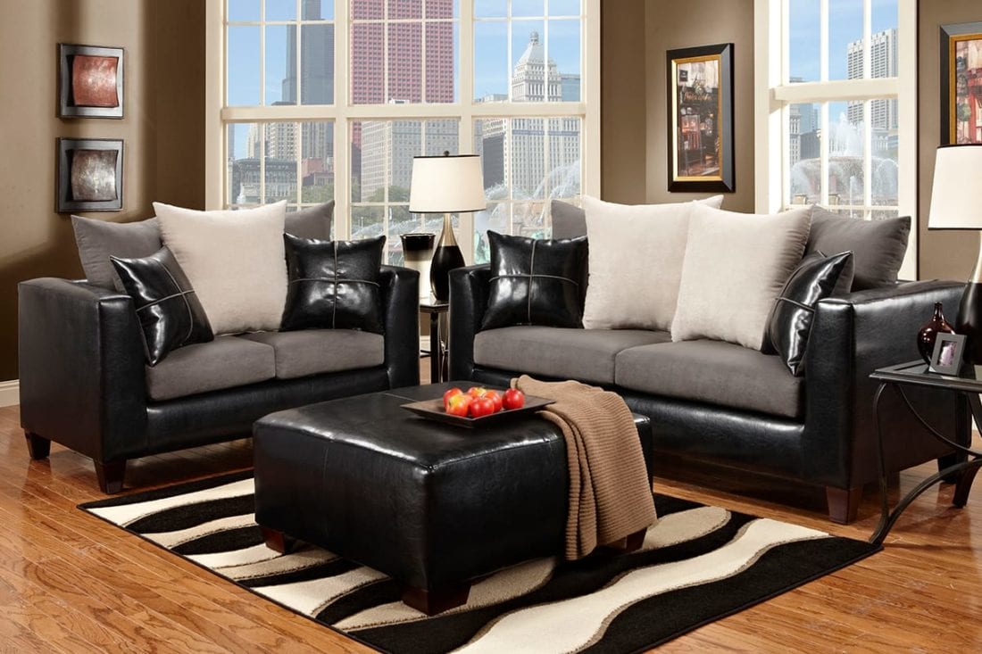2 PC Sofa & Loveseat - Faux leather in black or brown.